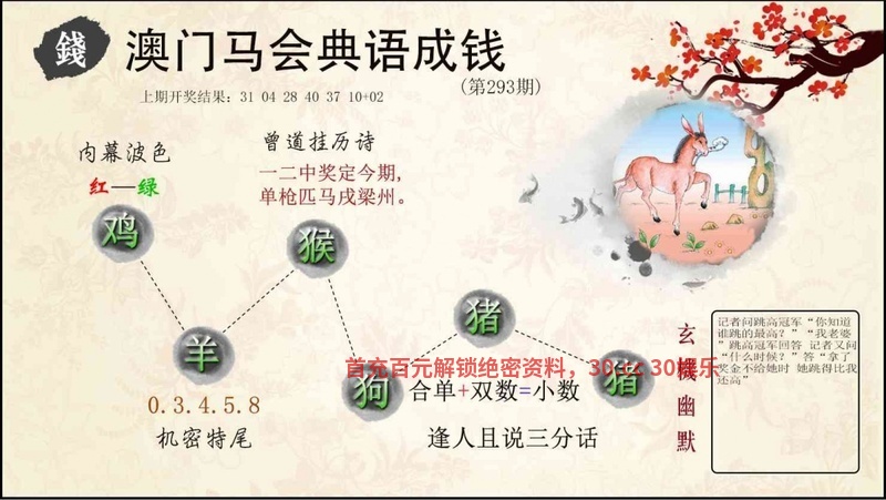 285期⑥肖 | 猪鸡马蛇龙鼠 | 马24中 |